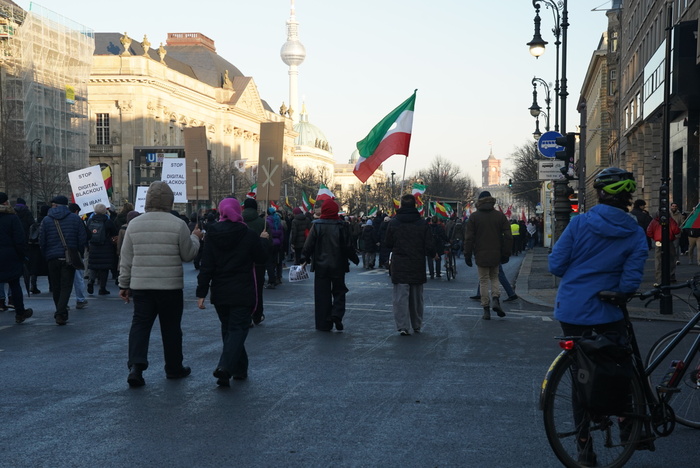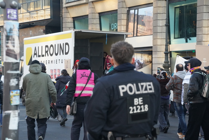 Пройдя по улице Унтер-ден-Линден, ты повстречаешь кучу демонстрантов, которые борются за права зелёных, красных, оранжевых и Палестины.
