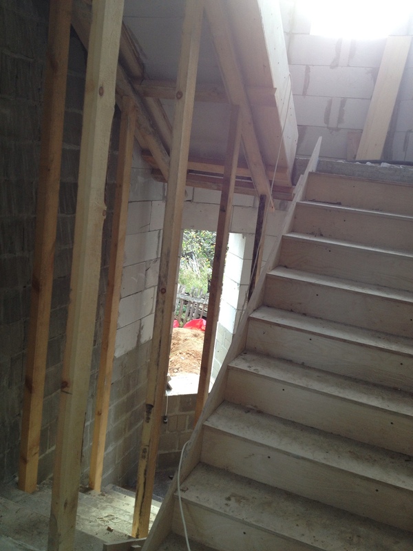 Лестницы сделаны по такому же принципу - газоблок, по бокам бетонные балки: