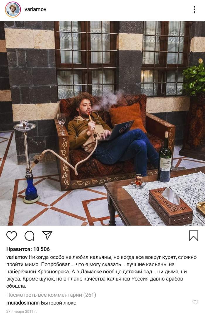 На заре туманной юности получил я стипендию, чутка добавил сбережений и купил кальян, небольшой такой. Помнится, около трешки стоил тогда. Как раз эти кальяны стали появляться тут и там в продаже, грех не попробовать. Ни хрена, ессно, не знал, как забивать и т.д., но я ж будущий инженер - с каким-то самоваром курительным не разберусь что ли? С двумя кентами собрались на квартире, положили в чашку табака "Черри", нахуячили угля дай боже и принялись кумарить.