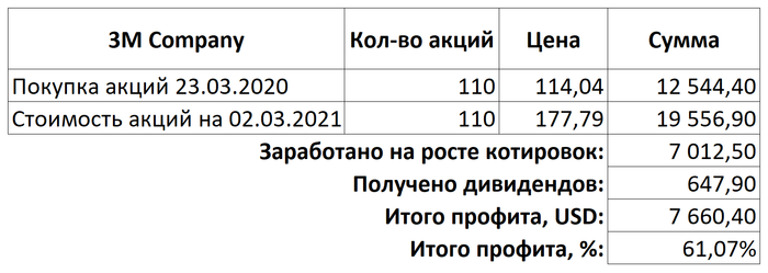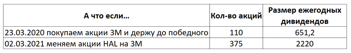 Вот взять даже наши расчеты. Представим, что 02.03.2021 мы продаем акции Halliburton, получаем на руки $66 760.7 и на эту сумму тут же покупаем акции 3M Company в количестве 375 шт. по $177,79. Посчитаем, что же выгоднее:
