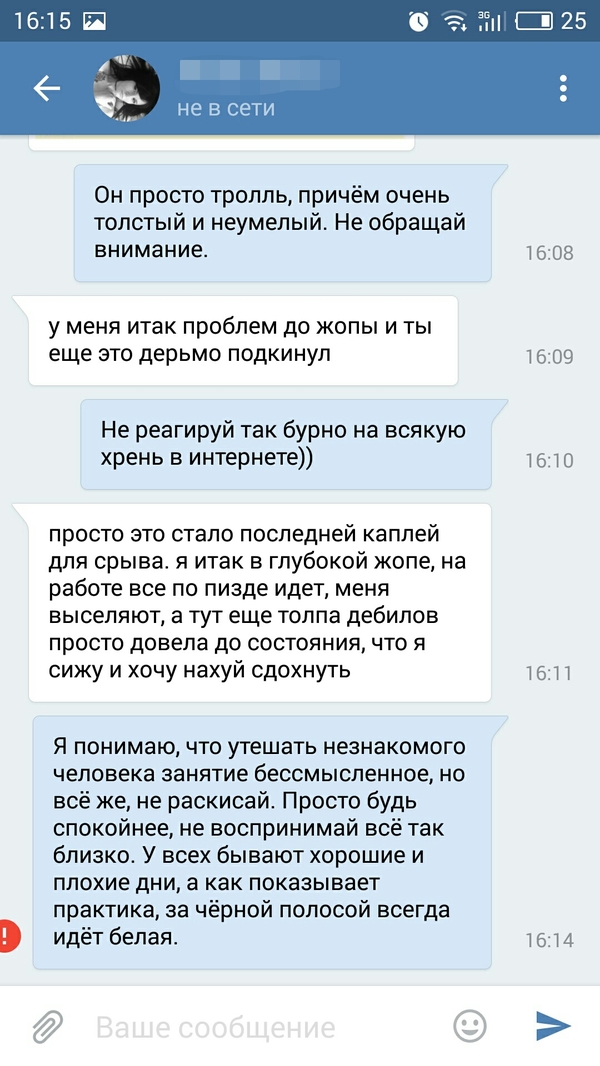 И не будь такой унылой какашкой, в этом мире и так слишком много вещей, которые отнимают наши нервы, силы и время, а ты грузишься из-за всякой фигни в интернете.