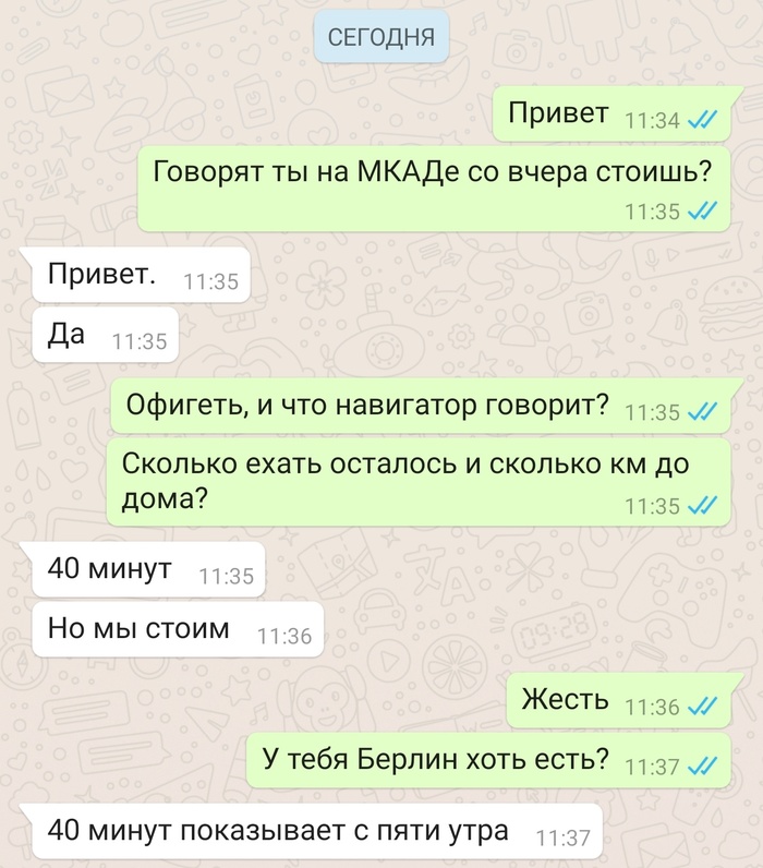 57 DELETED Коротко о погодных условиях в Москве 4 года назад P.S. от МКАДа, до дома Саши, 12км. Показать полностью 1 [моё] МКАД Москва Снег Пробки Скриншот Переписка 1 1 Ещё 0