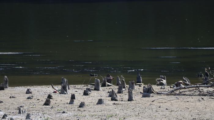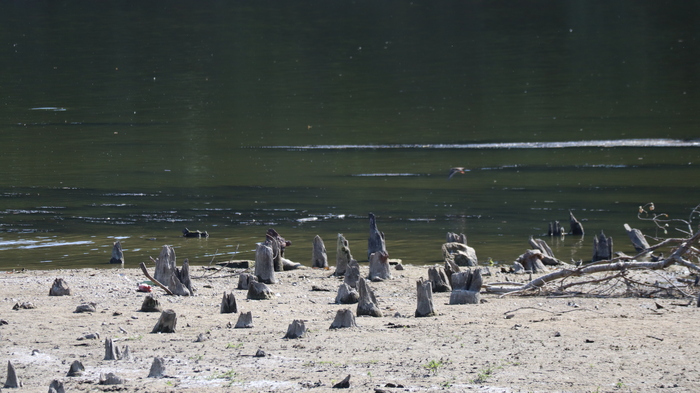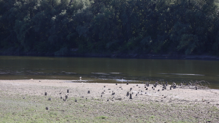 Но реальная переправа была левее от этого памятника и в этом году , когда Днестр обмелел, у меня была возможность снять , столбики, что от нее остались.
