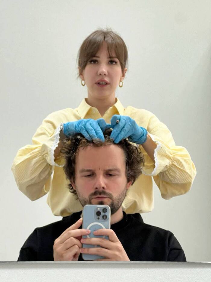 Вкратце расскажу, чтобы было понимание: мне дали операционный халат, в который нужно было переодеться , побрили голову , затем художник нарисовал естественную линию роста волос, согласно которой затем врачи должны были пересаживать графты. Наличие художника в клинике было неожиданно, я был приятно удивлен, насколько чуткий подход выбрала клиника. Основное по подготовке рассказал, но самое интересное ,наверное ,это то, что собой представляет сама операция : после местной анестезии врачи пересаживают графты из здоровой зоны в часть алопеции. При этом это делается в таком порядке, чтобы потом незаметно было, что здоровая часть головы поредела.