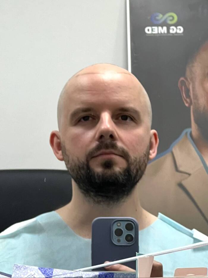 Результат на фото после первой операции, окончательный итог после второй еще будет, но результатом уже очень доволен. Пересадили в общей сумме 7.000+ графтов. Всем рекомендую, кто давно думает или откладывает.