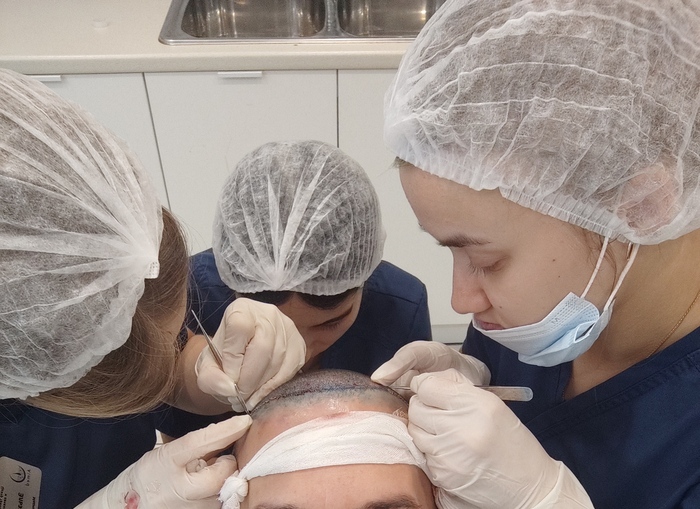 После обеда начался второй этап операции. Графтами надо было засадить мою лысину.