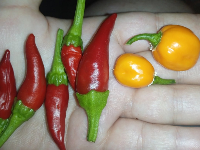 Созрели самые первые перчинки у хабы, я все ждала, что будут покрупнее, но уже начали кукожиться хвостики. Пришлось срезать. Еще несколько зреет, там вроде будут уже покрупнее, зеленые больше поспевших, будем посмотреть. И чиликов посрезала. есть мысль засушить и смолоть, пока урожай такой маленький))
