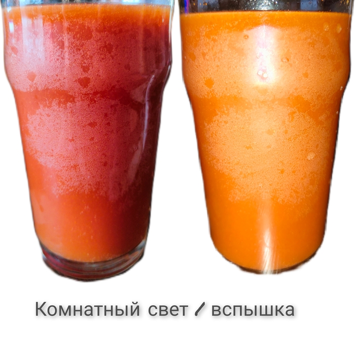Цвет: ярко алый с желтыми оттенками. Мутный, свет не пропускает. Видно мякоть овощей, и мелкие кусочки семечек и специи.