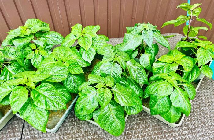 Сегодня пересадил последний перчик в плошку 10л и вынес все остальные из дома в парник