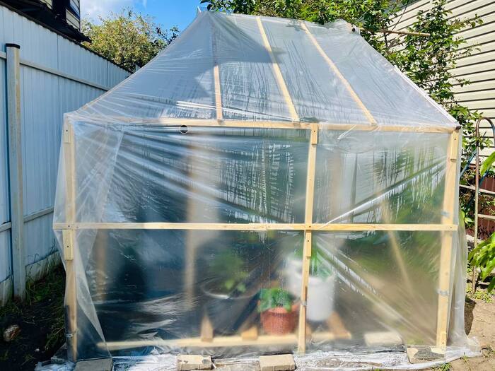 И на днях из говна и палок соорудил теплицу взяв за основу турник с брусьями.