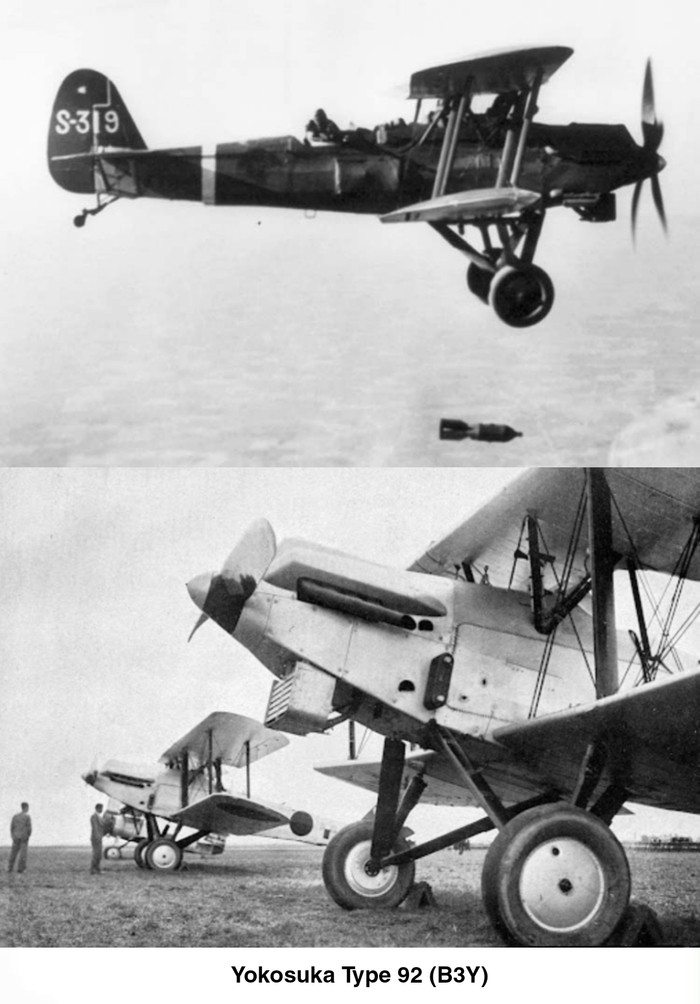 В 1932 году на вооружение поступили торпедоносцы Mitsubishi Туре 89-1 (В2М1) в количестве 204-х машин. За ними последовала серия бомбардировщиков-торпедоносцев Yokosuka Туре 92 (B3Y), состоящая из 129 единиц. Также, как и В1М, самолёт фирмы Yokosuka имел британские корни — его разработал конструктор фирмы Blackburn Джордж Петти. И в 1936 году линию бипланов закончила серия из 205 бомбардировщиков-торпедоносцев Yokosuka Туре 96 (B4Y).