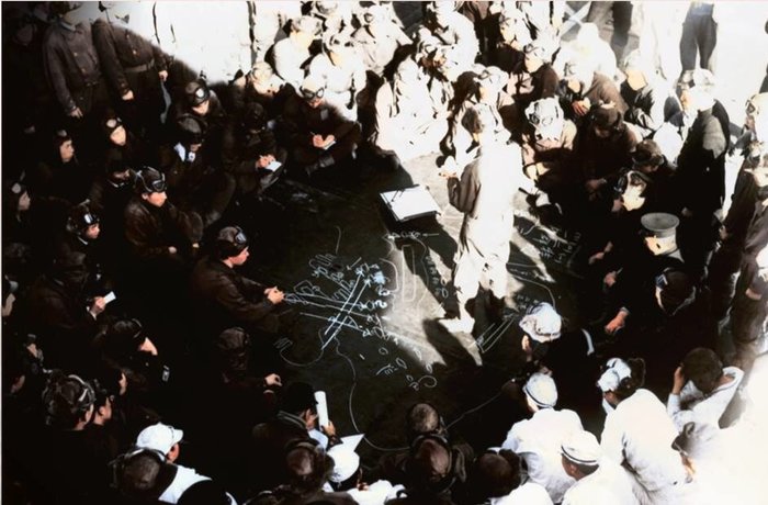 Эммерих вспоминает свою беседу с недовольным всеми предыдущими военными фильмами американским адмиралом: