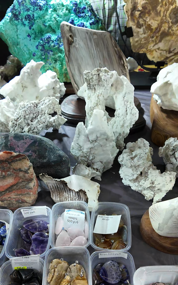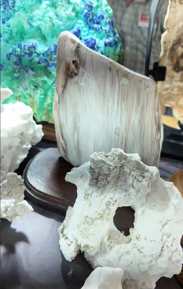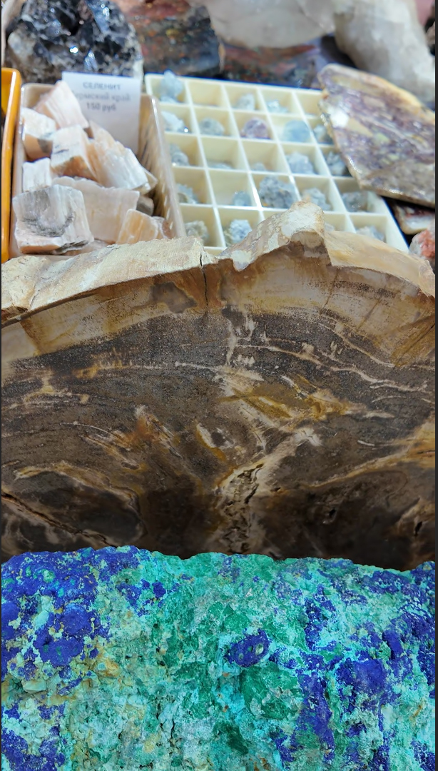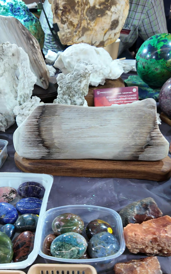 На выставке Гемма встретили палатку с окаменелым деревом и "талыми" белыми камнями. Давайте рассмотрим представленные образцы.
