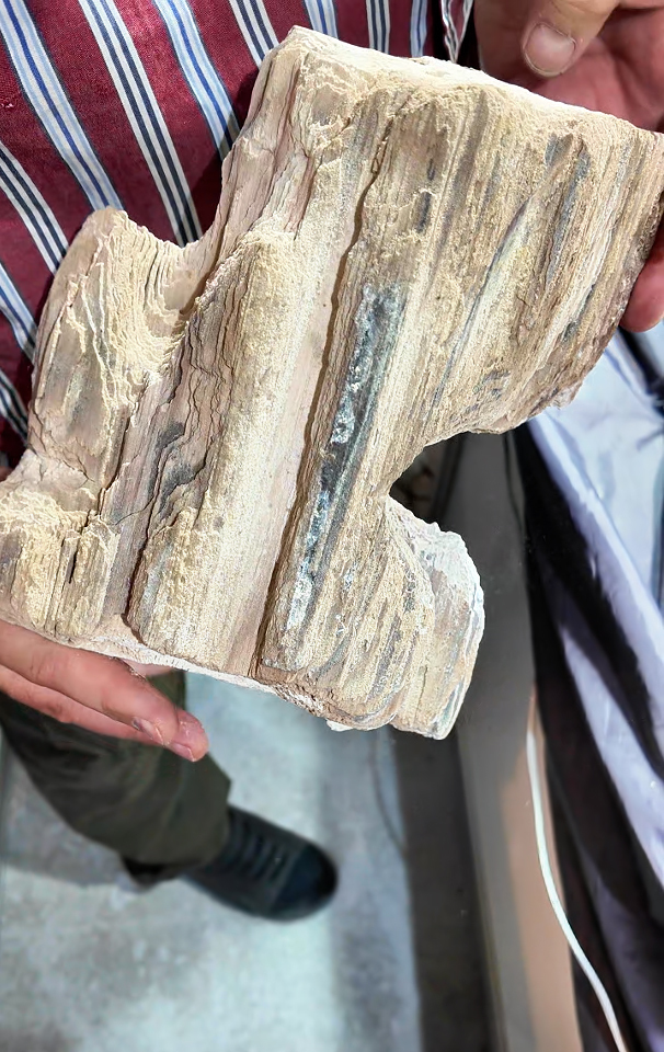Окаменелое дерево и белый "обветренный" камень, как талый снег, - ангидрит