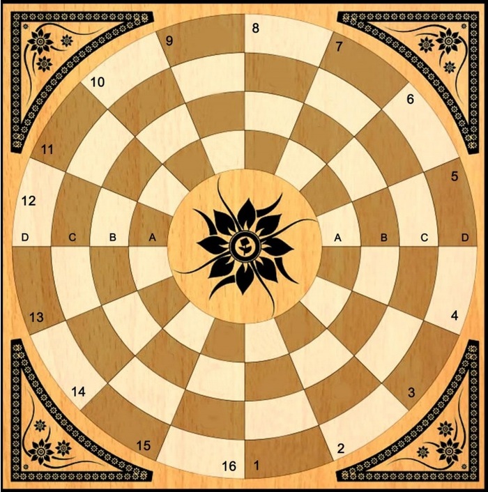 Теперь расскажем о том, как играли в затрикион византийцы и о том, как сегодня можем сыграть в него мы. Аль-Амуди оставил описание правил игры в шатрандж ар-румийя. Как уже говорилось, в игре использовалась круглая доска с четырьмя концентрическими кольцами, каждое из которых разделено на 16 полей, что в общей сложности дает 64 поля, как и в привычных нам квадратных шахматах. В данной версии шатранджа использовались те же фигуры. что и в обычном. Отличалось лишь их расположение: король и ферзь стоят на внутреннем кольце. Дальше от центра занимают свое место слоны, на следующем кольце кони и на последнем - ладьи. Пешки выстраиваются в ряд по бокам от центральной части. Таким образом, король одной стороны «сталкивается» с ферзем другой. Движение фигур так же аналогично обычному шатранджу, за исключением того, что если две пешки с одной стороны идущие в противоположных направлениях блокируют друг друга, противник может убрать обе. Кроме того, поскольку на поле нет тыла, то не возможно превратить пешку в какую-либо фигуру.