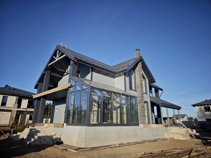 В трех этажном доме площадью 220кв.м. выполнен монтаж внутренних систем: