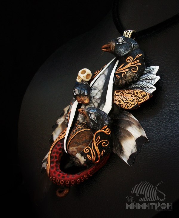 Это самая дорогая моя работа по материалам, времени и даже техникам, поскольку тут присутствует их достаточно, пришлось даже лепку освоить из полимерной глины для такого дельца!