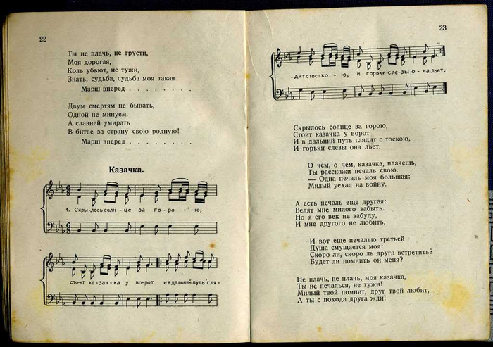 В продолжение поста https://pikabu.ru/story/pro_sobaku_5212464 по просьбе @rebzi снимок страницы из песенника детства моего :)