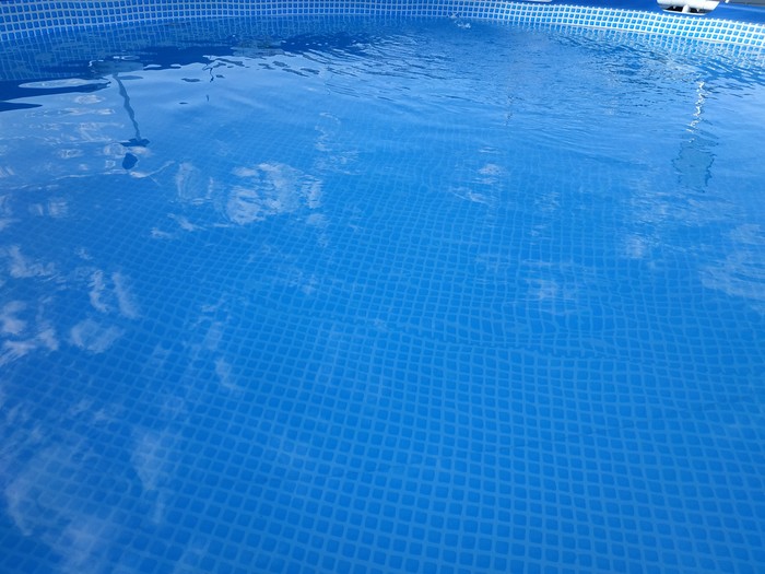 Всем привет, сейчас 7утра и я немножко расскажу про свой бассейн. У нас небольшая база отдыха, работаем уже третий год. За бассейном следил братишка, но в этом году он не смог приехать. Так что в этом сезоне он полностью на моей шее, помимо всего прочего. Заезды у нас с первого июня, и детей с каждым днем все больше. Разрешаем купаться до 15 лет, ну и иногда мамочкам с маленькими детьми. Размер 5.5м и глубиной 1.3м. установлен песочный фильтр. Вот эти фотки сделал сейчас, еще до пылесоса и установки скимера. Первым делом скину выходной шланг на лужайку, устанавливаю длинный шланг, ставлю фильтр на N, и начинаю пылесосить дно. Времени уходит немного, около 10мин. Далее ставлю фильтр на очистку песка на пару мин, выходит вся грязь, накопившаяся за ночь, потом ставлю все на место, устанавливаю скимер буквально на пол часа, соответственно в режиме фильтрации, и набираю чистой воды до уровня. И все отключу. Весь день ребятишки купаются. На ночь просто включаю фильтр, через день крошу четверть сухой таблетки во входное устройство. Вот и все, вода у нас со скважины.
