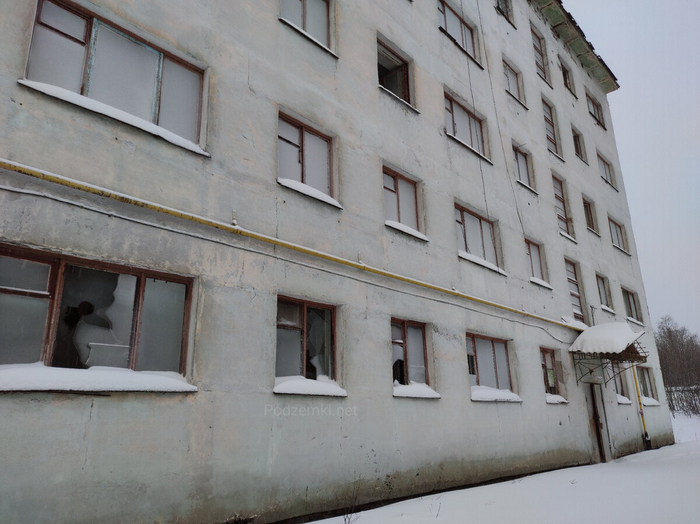 Возле школы к нам подошел местный житель. Оказывается, одна из пятиэтажек ещё частично заселена (из всех квартир заселены только около 20), хотя жителям в начале 2022 года пришло уведомлении о расселении поселка. Жильцам предложили жилье в расположенном неподалеку поселке Пушной, так как содержать Песчаный ради одно частично заселенного дома стало нерентабельно.