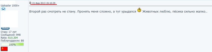 За это время я пережил свои самые серьёзные в жизни отношения и разрыв этих отношений. В период когда я отходил морально, я был эмоционально уязвим и когда сдуру скачал на этом торренте фильм "Хатико самый верный друг (фильм 2009) г.", рыдал как ребёнок и хотя фильм мне очень понравился, с тех пор никогда его не пересматривал. Даже нашёл свой комментарий под этим фильмом. )
