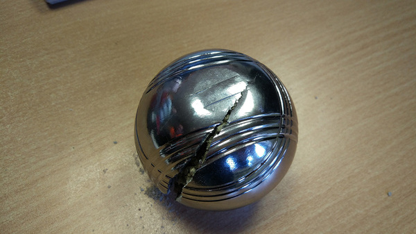 Ну что же, теперь внутренность шара для игры в петанк не является ни для кого тайной. В эти или в следующие выходные доберусь до гаража, зажму шар в тиски и постараюсь распилить сталь по кругу, не трогая каменное нутро. О результатах отпишусь с тегом Петанк.