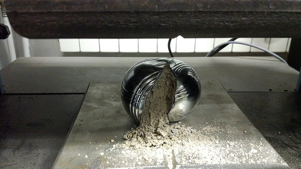 Уйдя в шар сверлом на всю длину, я почувствовал, что прошёл весь слой камня (а он сплошной, без пустот) и упёрся в противоположную стальную стенку.