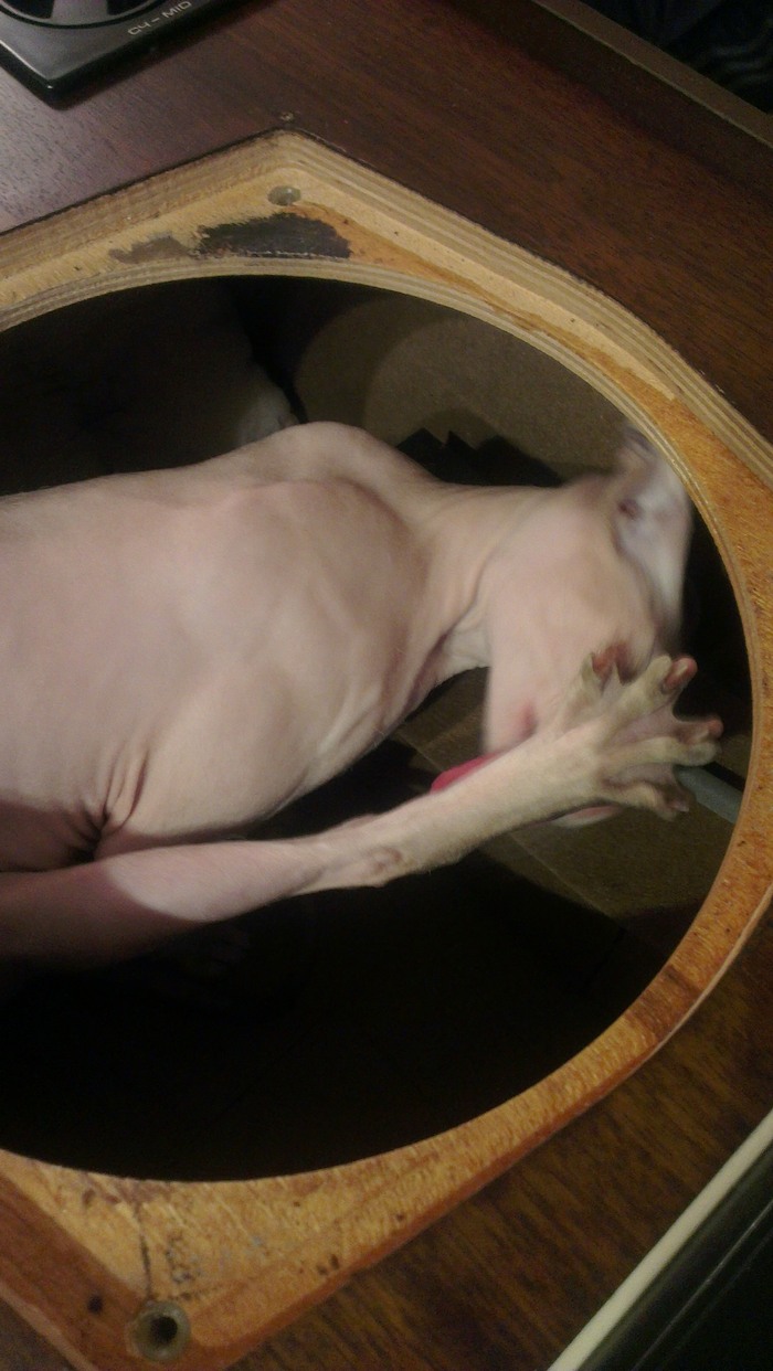 Кошка породы петерболд. Любимые игрушки - провода и термоусадочные трубки. Любимые птицы - вороны (остальных не замечает в принципе).