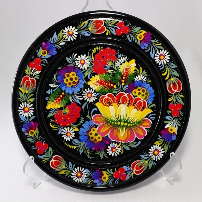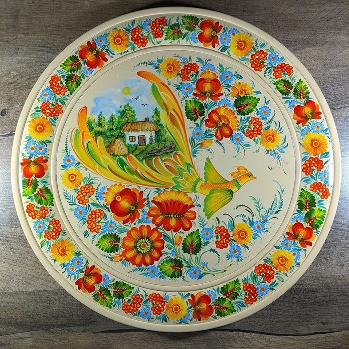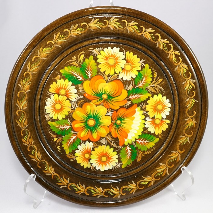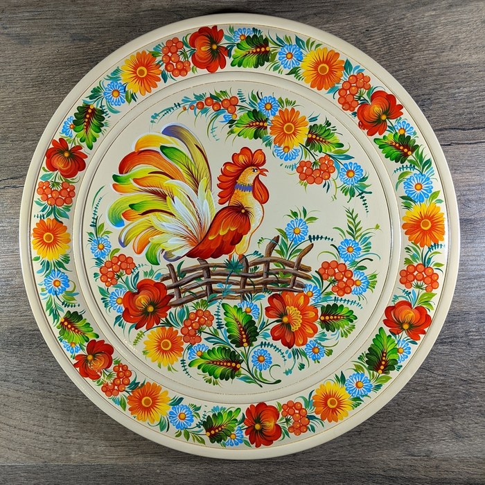 Накопилось у меня немного фото деревянных тарелок с росписью . У них разный диаметр, цвет фона ну и конечно же Петриковская роспись немного отличается)