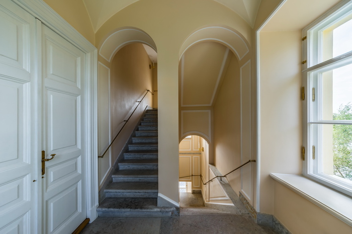 На третьем этаже павильона находится Кабинет Николая I, оформленный скромнее, чем интерьеры дочери, и украшенный скульптурным портретом самого императора работы Ивана Витали, а также гравюрами, изображающими города Италии, в которых бывал отец великой княжны.