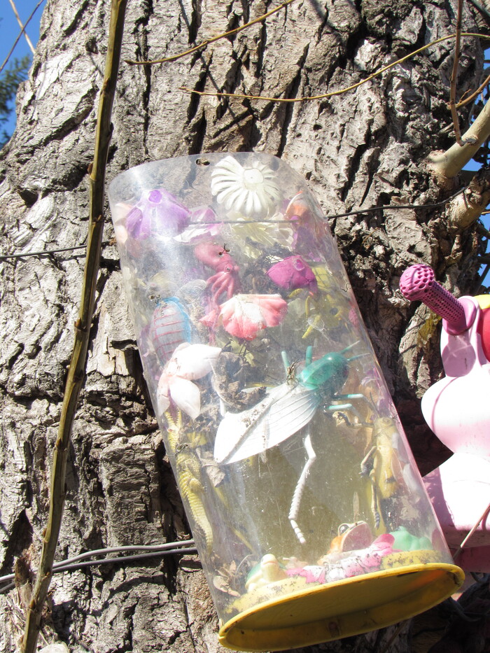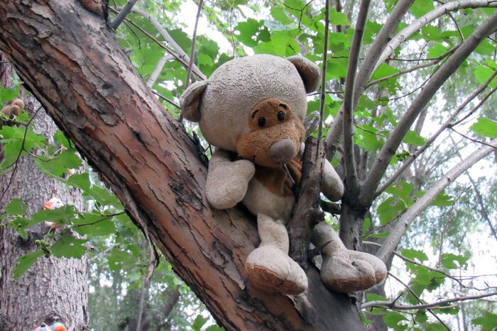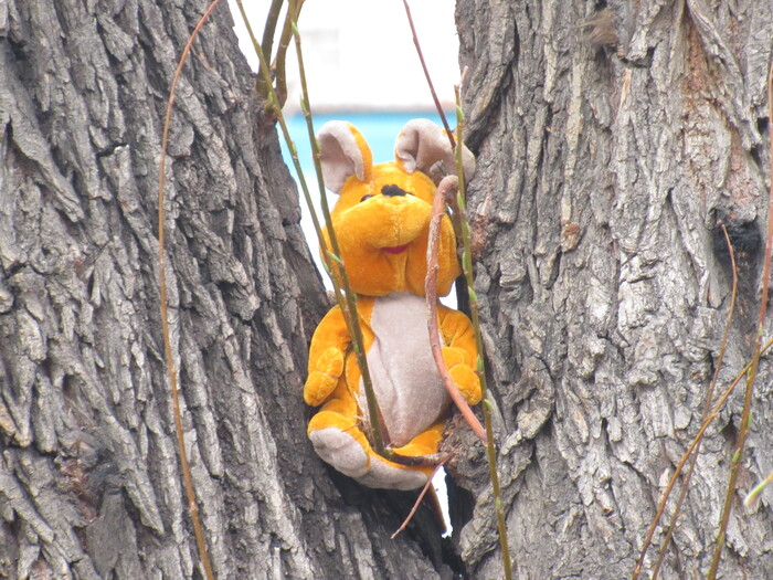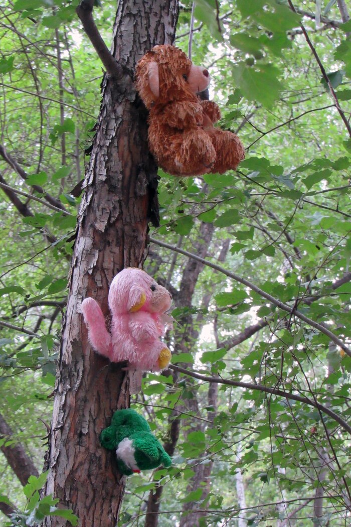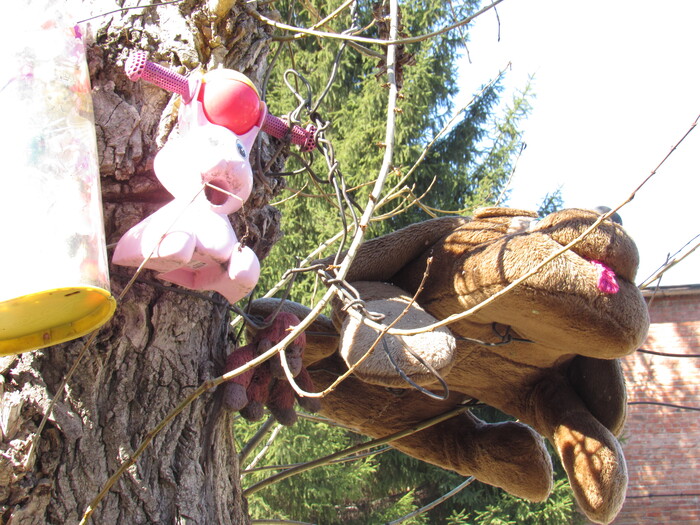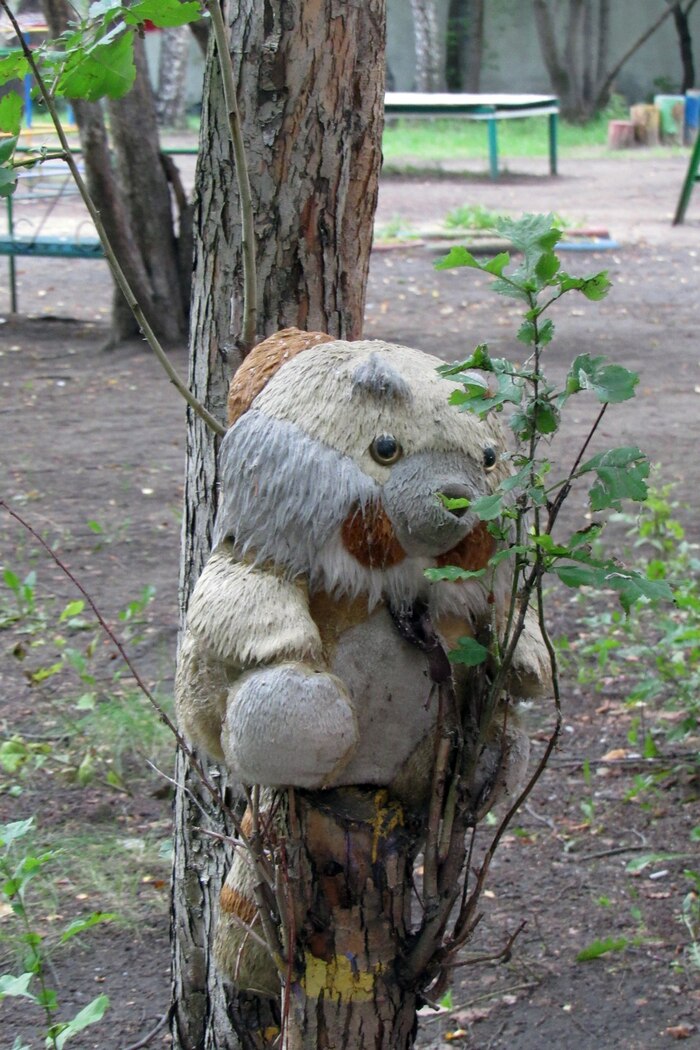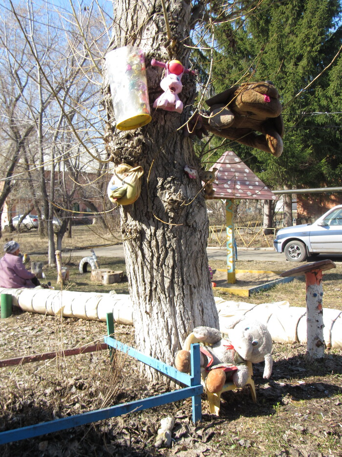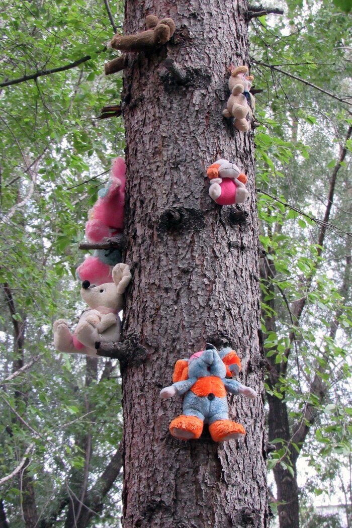 Ну, про лебедей из старых покрышек, наверное, все знают и слышали. Их сразу опустим. Скорее всего явление повсеместное и в основном касается частного сектора. А как насчет прибитых к деревья мягких игрушек?