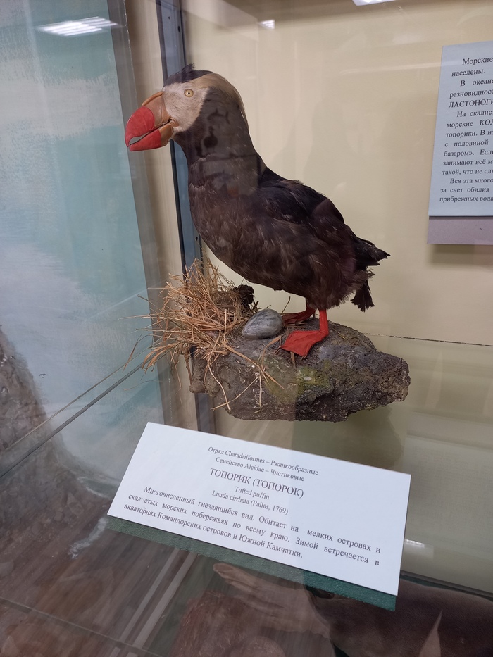 Экспозиция музея небольшая, но там можно увидеть некоторых животных населяющих полуостров, познакомиться с историей города Елизово и узнать что камчатский медведь это не просто обаятельное животное, а опасный хищник.