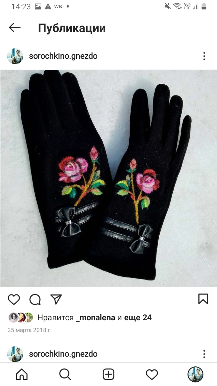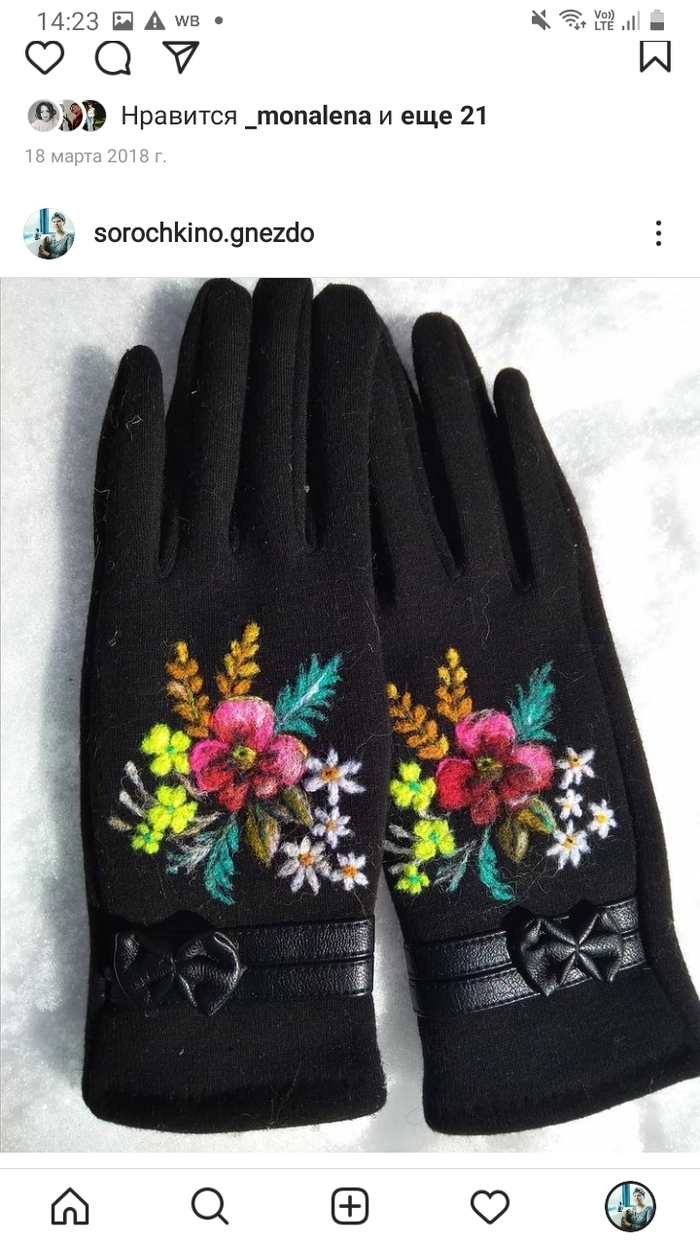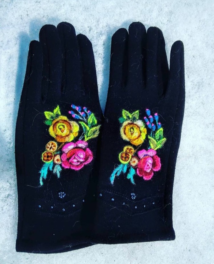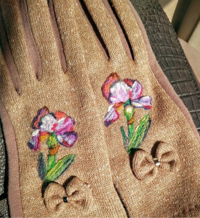 37 Sorokinognezdo Рукодельники Перчатки с рисунками из шерсти."Цветы" 4 года назад Покажу еще одну из излюбленных тематик в шерстяном рисунке.В качестве основы беру дамские шерстяные,или трикотажные перчатки. Рисунок наношу в технике сухого валяния. Показать полностью 5 [моё] Печатки Своими руками Цветы Длиннопост Рукоделие без процесса Ещё 0