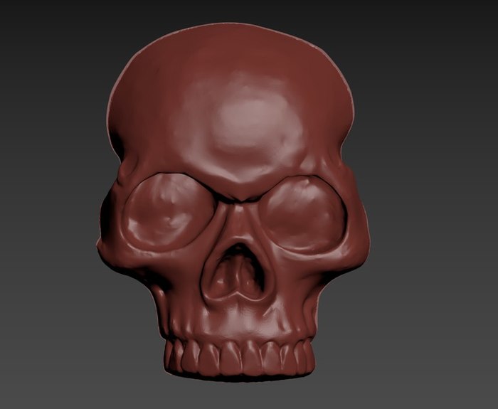 В программе Zbrush был смоделирован череп и импортирован в 3ds max. Важно заметить, что все же это модель печати, и поэтому череп не должен иметь каких-то сложных форм, он должен выглядеть отштампованным.
