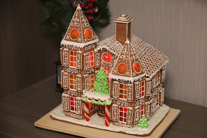 Этот домик стал для меня рекордным — и по размерам, и по сложности. Его габариты примерно 35 см в длину, 23 см в ширину и 30 см в высоту. На него ушло тесто ровно из килограмма муки (по тому самому рецепту, который я уже выкладывал). А вся работа заняла около недели.