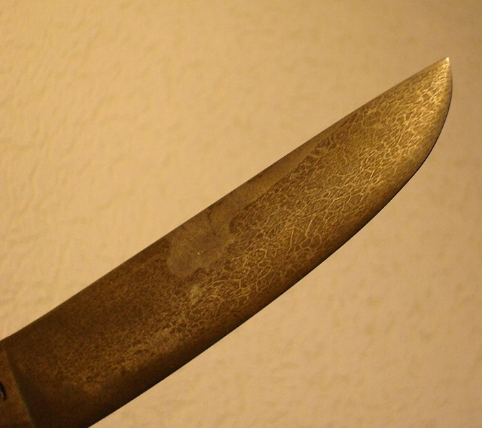 Могу сказать, что вследствие различных процессов, в частности нагрева печи, нижняя часть слитка отличалась по количеству углерода и структуре от верхней части. Выяснив, что таким путем хоть и возможно получить сталь с узором, но узор значительно отличается от классического булатного, опыты по этой теме я прекратил. Клинки с таким узором уехали в США, где, наверное, и находятся по сей день, если их не сломали или не потеряли.