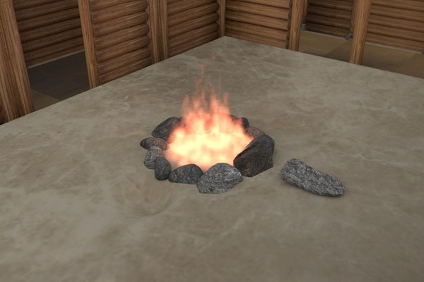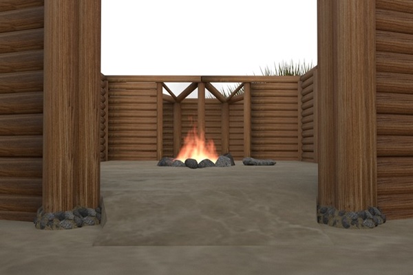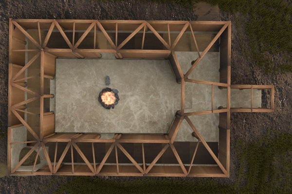 Центральная часть храма с очагом не имела перекрытия, так ка на всем пространстве ширины помещения не обнаружено ни одной столбовой ямки. Перекрытие из бревен тянь-шаньской ели длиной 6м было бы слишком громоздским и конструктивно не вписывалось архитектуру храма. Видимо древним людям было важно, что этот священный огонь был непосредственно обращен к небу.