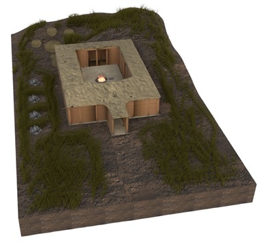 Итак, раскопки завершились полным открытием объекта, который по нашему пониманию представляет собой храм Огня, который просуществовал с середины до конца II тысячелетия до н.э., то есть храм был построен в XV-XIX вв. до н.э. в андроновское период эпохи бронзы (фёдоровский этап) и функционировал в этом качестве вплоть до финальной бронзы – рубеж XI-X вв. до н.э. Ближайшее поселение этого времени расположено от него всего в 300м восточнее за ближайшим холмом. От храма нами прослежена дорога, которая вела к могильнику в 1км к западу от него. Большинство погребенных на этом древнем кладбище были перед захоронением кремированы. Пазл сложился и стало понятно как жили люди в этом высокогорном ущелье (2375м над уровнем моря). Но как выглядел храм тогда в древности – это несмотря на любые раскопки всегда немного загадка. Здесь мне помог инженер – дизайнер Кирилл, сын моих коллег и университетских друзей. На основе графических чертежей, мы попытались восстановить прежний облик помещения.