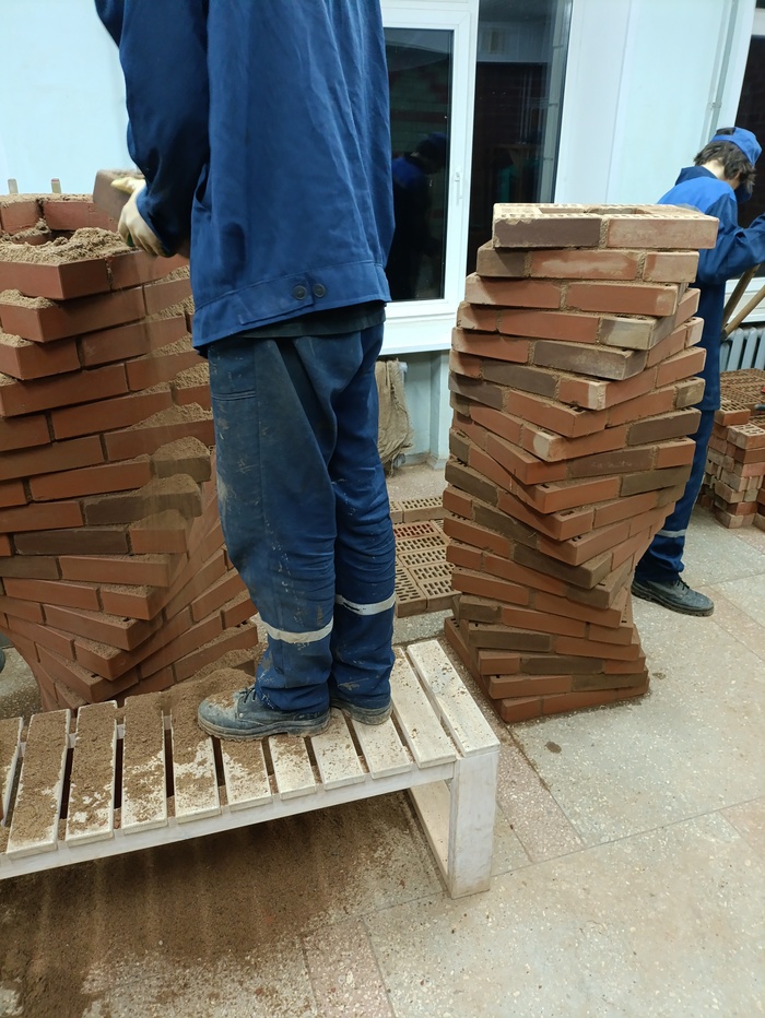 Цемент мы не используем. В конце учебного дня, работу нужно сдать мастеру а затем ее разобрать. Подготовить рабочее место к следующему уроку.