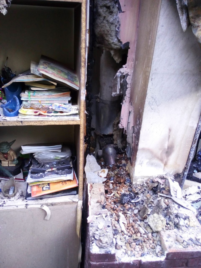 Видите расстояние от печи до стеллажа слева от нее? Как думаете, что могло пойти не так?