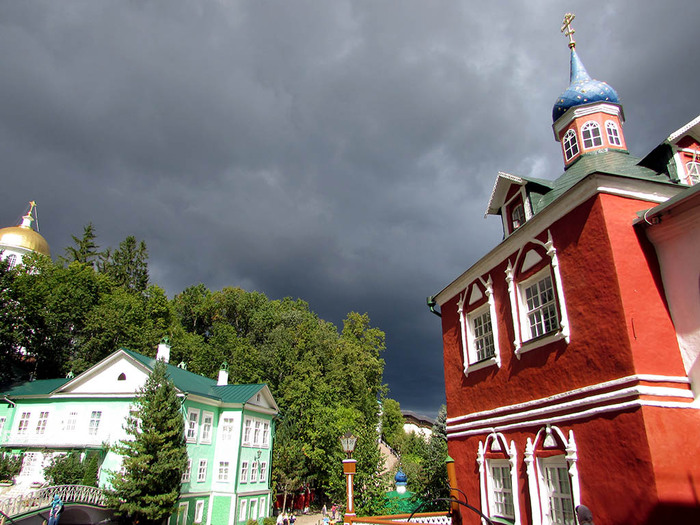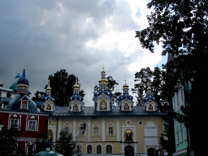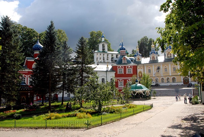 Итак, Псково-Печерский монастырь. Древний. Существовал уже до середины 15 века, время его основания точно не известна. По легенде крестьяне / охотники / пастухи проходили мимо холмов, и из под земли им открылся ход в пещеры, "богом зданные". Там уже жили какие-то подозрительные монахи, рассказавшие, что место святое, и понеслось... Монастырь за всю свою историю ни разу не закрывался!