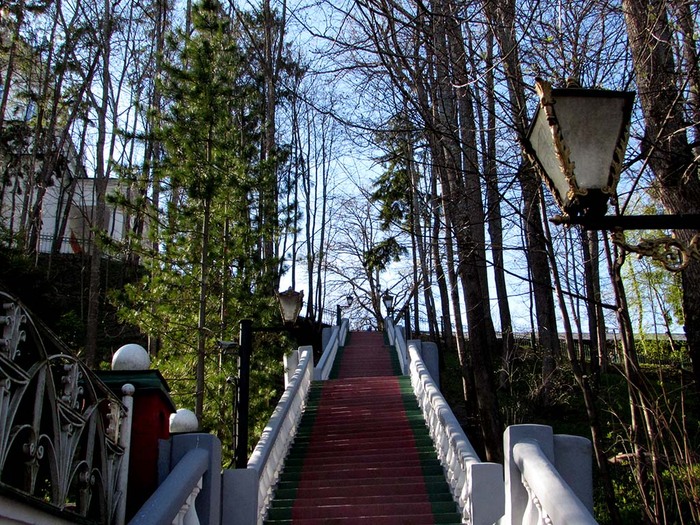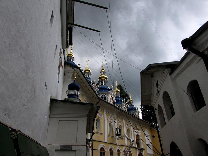На верхний ярус монастыря не пускают. Наверх идет лестница, она закрыта для мирян. На ней я был тем не менее два раза. Первый раз - школьником, когда здесь водили пионеров и показывали им порочность монашеской жизни. А второй раз в прошлом году - когда меня приняли за паломника и попросили помочь отнести на службу в храм цветы. А я чего - принял послушание. За что получил доступ не только на лестницу, но в служебную часть храма. Было интересно.