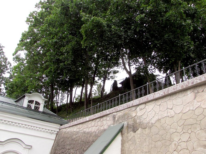 Вон там наверху беседка, про которую рассказывал Тихон в своем нетеленном шедевре - ну, там обычно бездельничали монахи. Туда водят только особые паломнические группы. То есть в запретную часть попасть можно, но надо заморочиться.