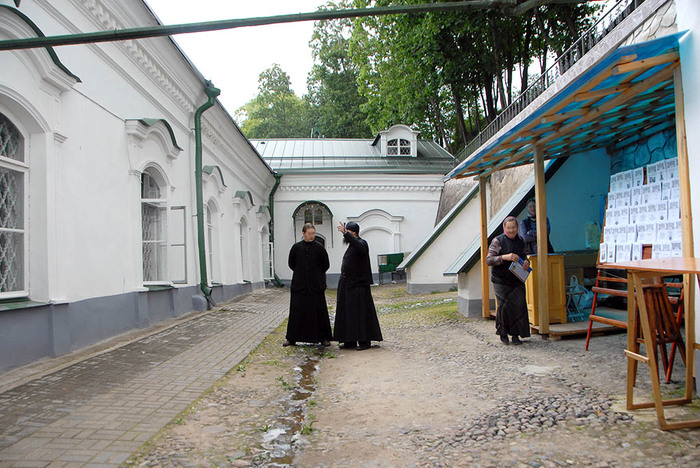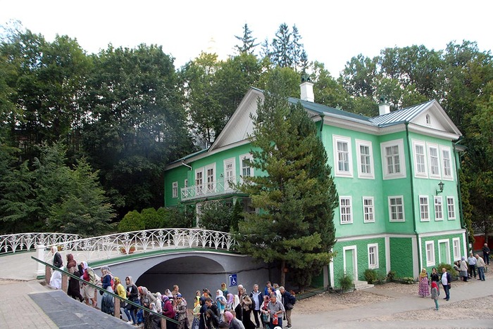 По центру долины стоит дом наместника монастыря. Сейчас настоятелем служит митрополит Псковский и Порховский Тихон (Шевкунов). Тот самый, который написал бестселлер "Несвятые святые", прославив Псково-Печерский монастырь и архимандрита Иоанна Крестьянкина на всю страну. Книга и в самом деле полезная благодаря ей в монастырь съезжаются тонны паломников со всех концов света. А это очень хорошие деньги. О моем безбожном мнении о книге я писал в рецензии. Тем не менее, почитать стоит, особенно если соберетесь посетить монастырь.
