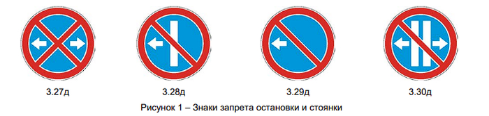 Знаки запрета остановки и стоянки (3.27д, 3.28д, 3.29д, 3.30д)