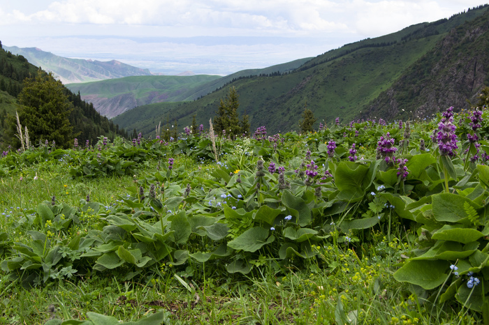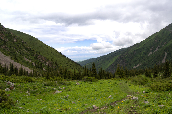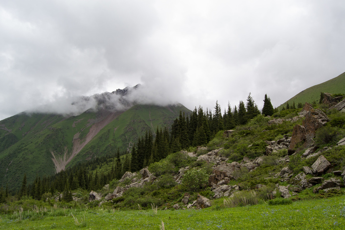 Вначале ущелье было, как ущелье — ничего сверхъестественного как по мне. Когда поднялись выше, пейзажи резко сменились. Ущелье расширилось, шум речки утих (это подземная речка, выходящая на свет посреди ущелья), лес отступил, появилось разнообразие цветов, похолодало.