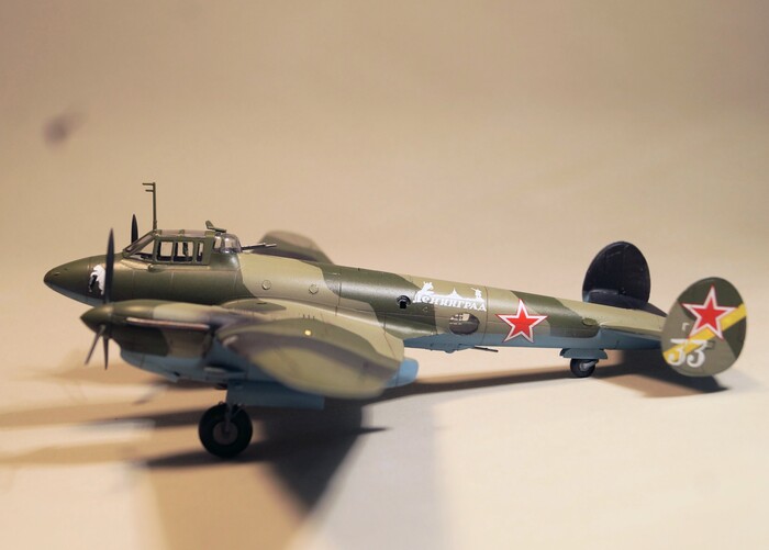 Модель пикирующего бомбардировщика ПЕ-2 в масштабе 1:72. Модель от "Звёзды", с применением фототравления от Микродизайн. Строилась на онлайн-конкурс, фотографии делались за несколько минут до конца, местами, в спешке забыл снять маски, но вот как есть, без прикрас. Собрано с небольшими косяками, но времени что то исправлять уже не было. Дальше планирую сделать подставку и на полку