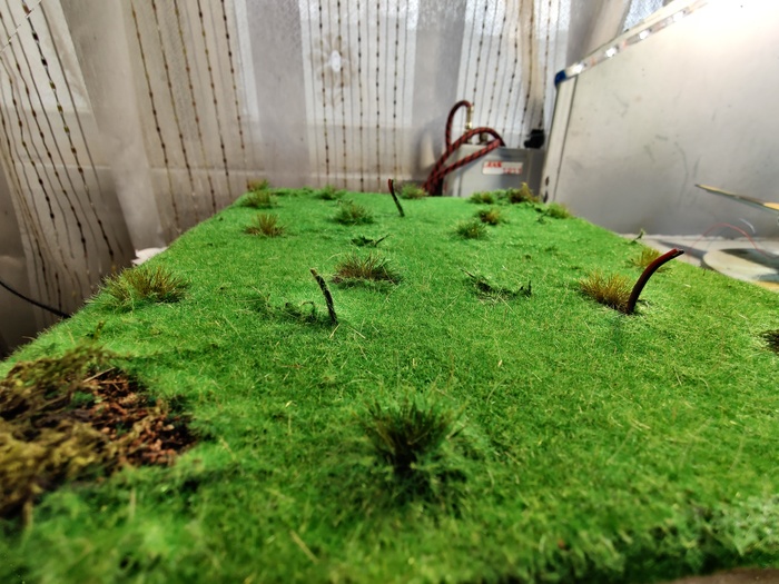 Акриловая смывка Vallejo Wash чёрная, Промасленная земля и Пустынная пыль. Из неё же сделаны загрязнения. После смывки - матовый лак.