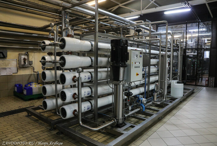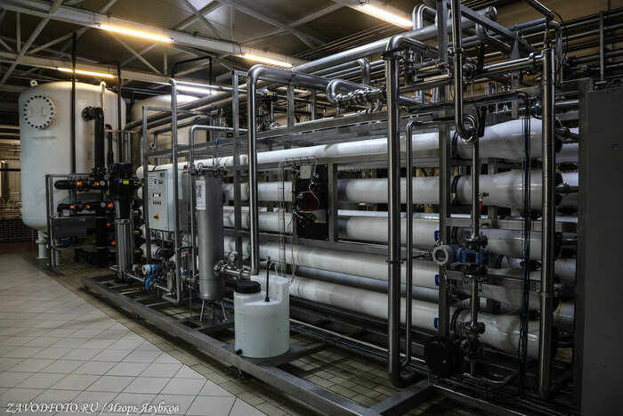 Воду они берут из собственных артезианских скважин, а потом ее ещё и дорабатывают, с помощью умного оборудования для водоподготовки. Эта система - гордость пивоварни. Благодаря ей они могут воссоздать воду из любого уголка мира.
