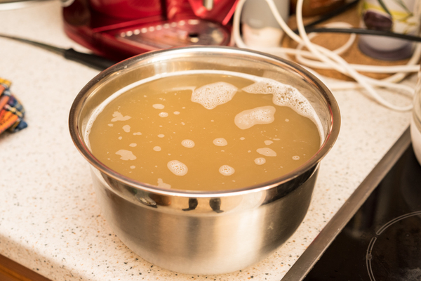 Кастрюлька, в нее дуршлаг, в него мешок пивоваренный или колготы жены, главное чистые новые, что найдете, главное не марля, её волокна из зубов будете доставать потом.
